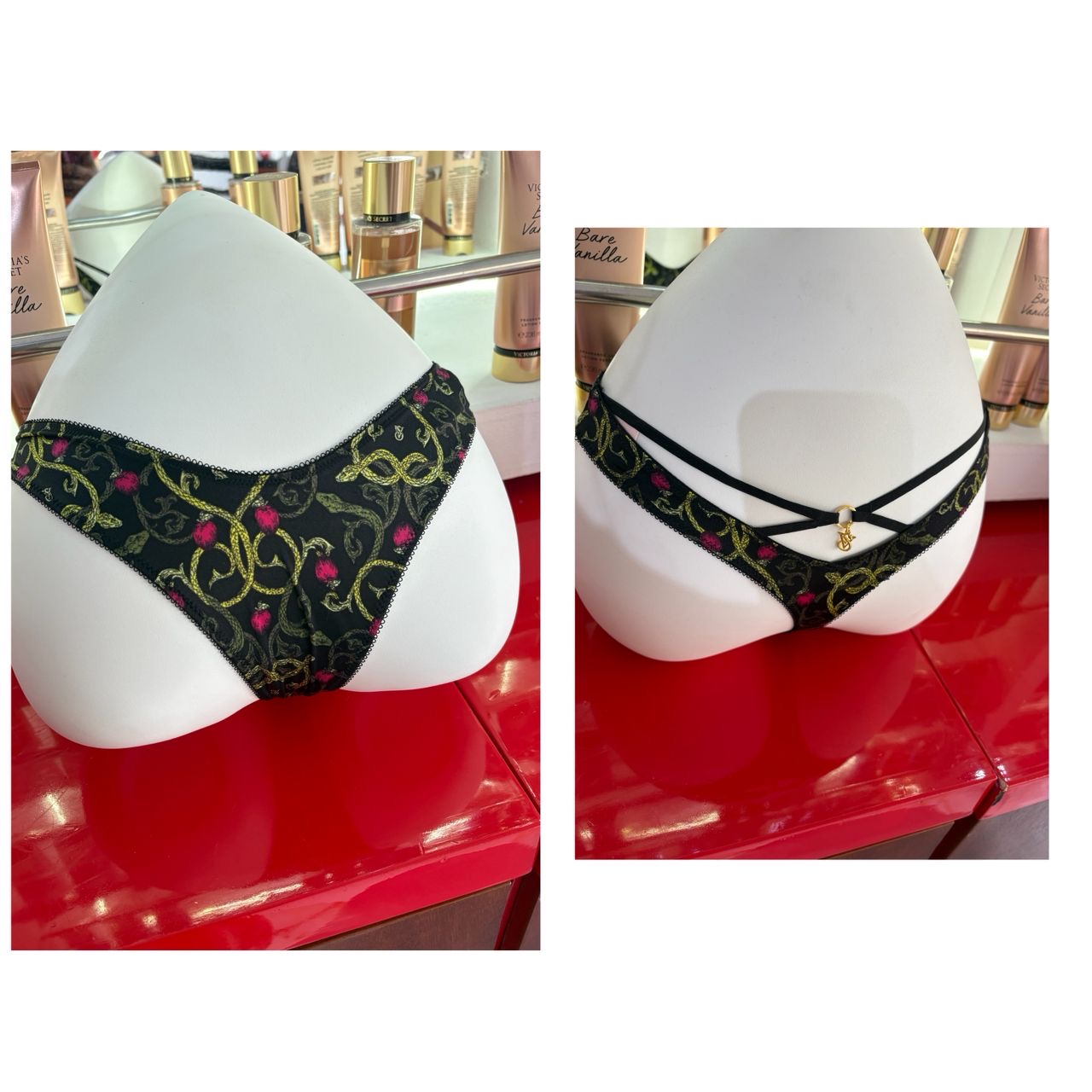 Tanga échancré bordé de dentelle rose